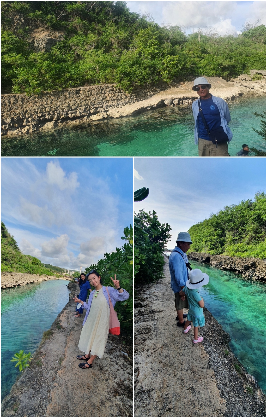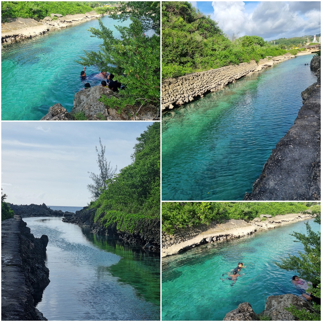 우리나라 포천 아트밸리 천주호에도 가까이에서 들여다보면 에메랄드빛으로 반짝이는 것을 볼 수 있는데 호수에 가라앉아 있는 화강토가 햇빛에 반사된 빛들이라고 하는데~~이곳 괌 에메랄드 밸리(Emerald valley)도 같은 이유에서일까???