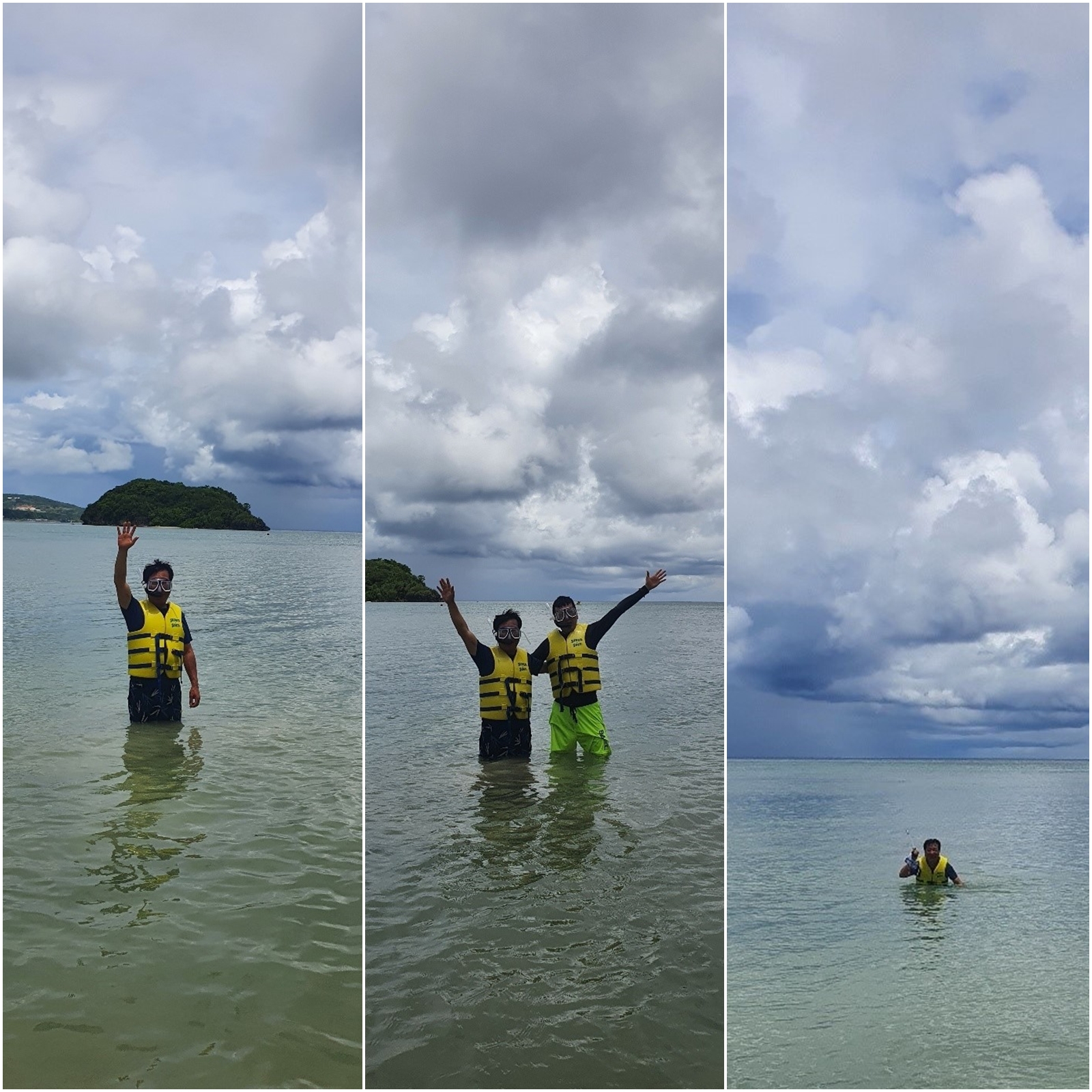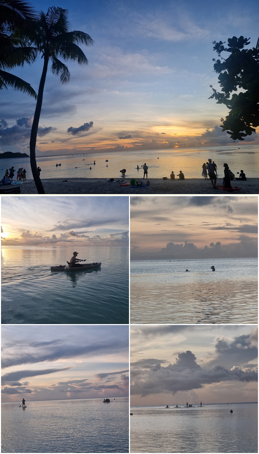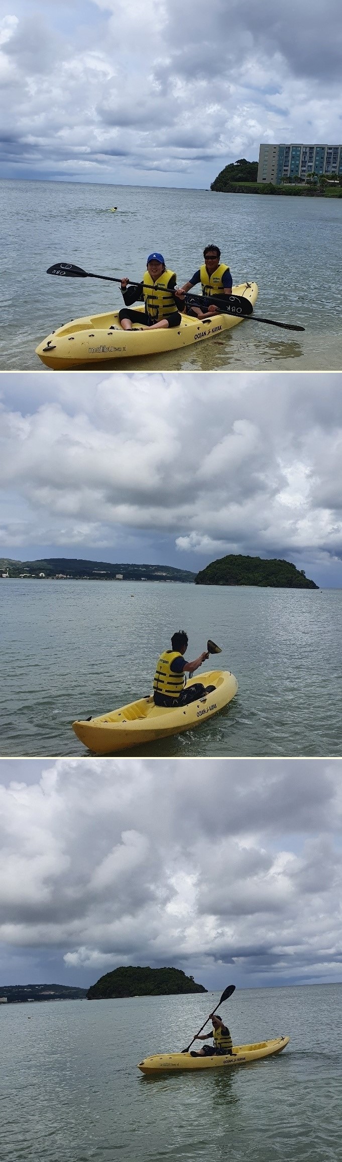 저녁 식사전 沙浜(사빈) BEACH 해변에서 비행의 피로를 달래본다.이곳에서는 제트스키를 탈수 있고 스노클링을 할수 있으며 카누를 즐길수 있는곳이다. 카누는 호텔 에서 투숙하는 여행객에는 무료로 대여 해주며 카누를 타고 알루팟 섬까지 갈수 있다.