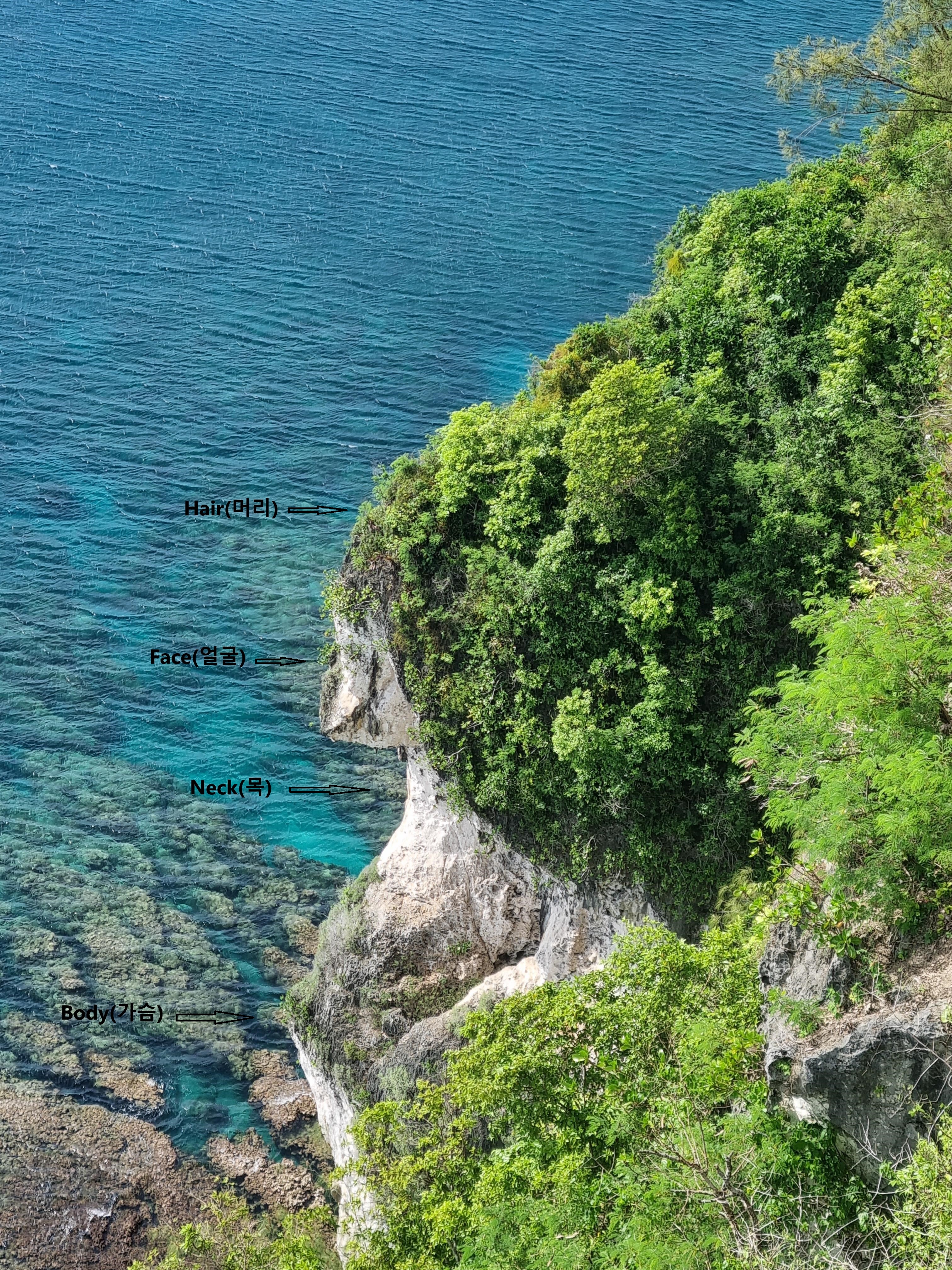 경치가 좋은곳. 관심있게 보면 좋은 남,녀의 모습이 눈길을 끈다.바닷가 부분은 남자의 모습(Man in the Water)이고 절벽 쪽은여자의 모습(Lady in the Cliff)이란다.절벽의 여자의 모습과 바닷가 남자의 모습이 전망대를 사이에 두고 절벽의 여자는 바닷가의 남자를 바닷가의 남자는 절벽위의 여자를 바라보는 모습이 남,여 대비가 되니 관광의 포인트로서 재미가 있는 곳이다.