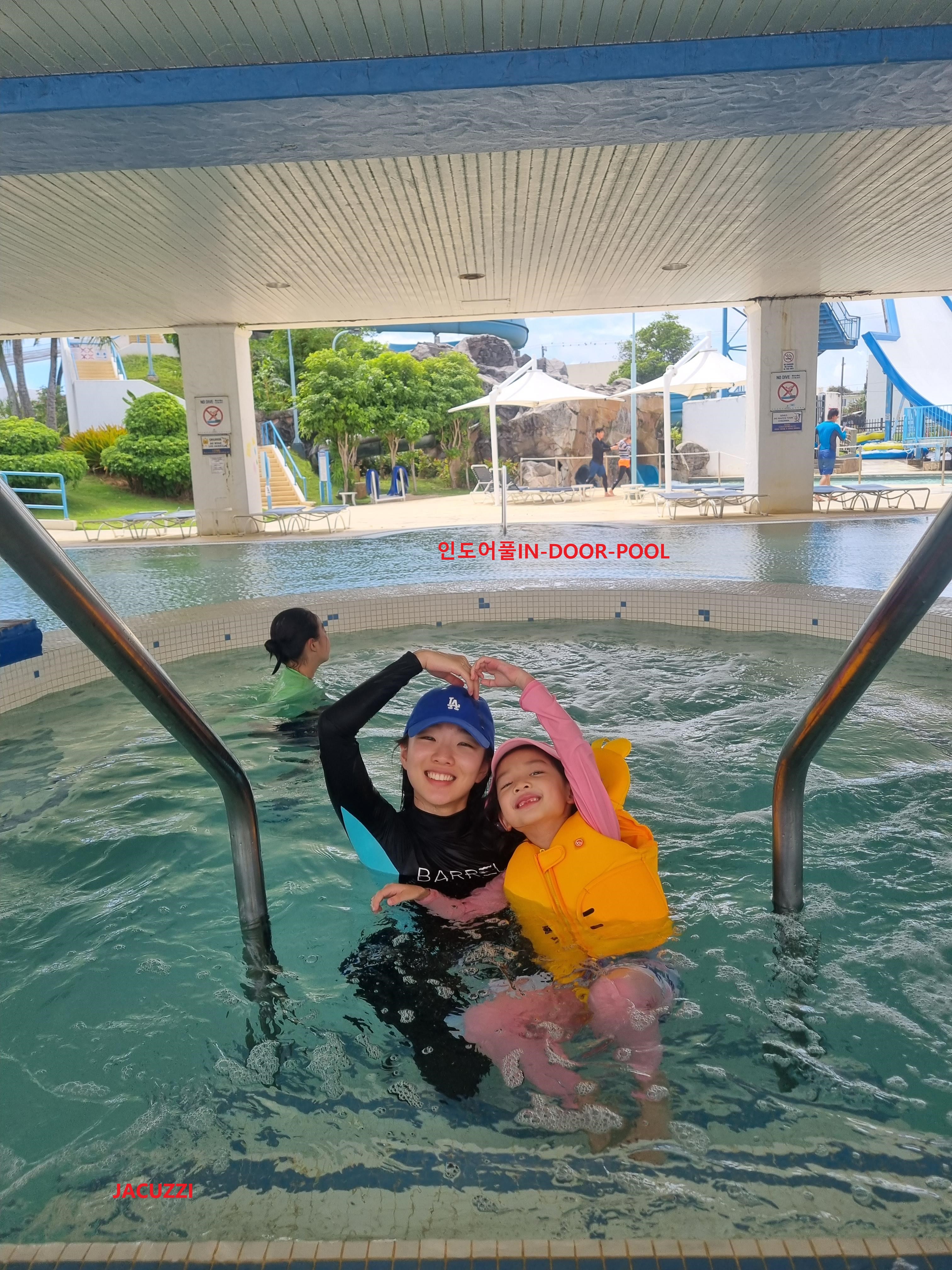 지붕이 있는 인도어풀(IN-DOOR-POOL)은 뜨거운 태양을 피해 실컷 수영을 즐기고 싶은 분들에게 추천한다. 자쿠지(JACUZZI)에서는 수영 하느라 지친 몸을 지붕이 있는 자쿠지에서 편안하게 쉬어보자.자쿠지(Jacuzzi)는 기포가 나오는 욕조 브랜드이다.