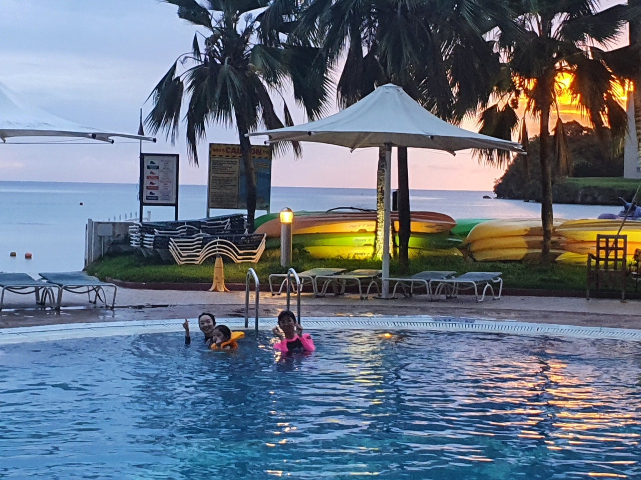 대여되어 기다리는 동안 Onward Beach Resort수영장에서 몸을 풀어본다.투숙객에 한해서 카누는 무료로 대여 해준다.
