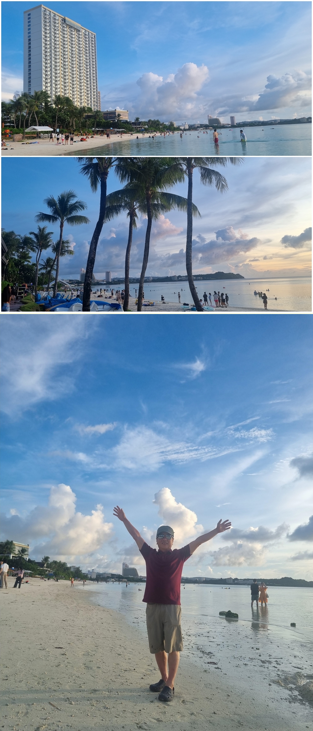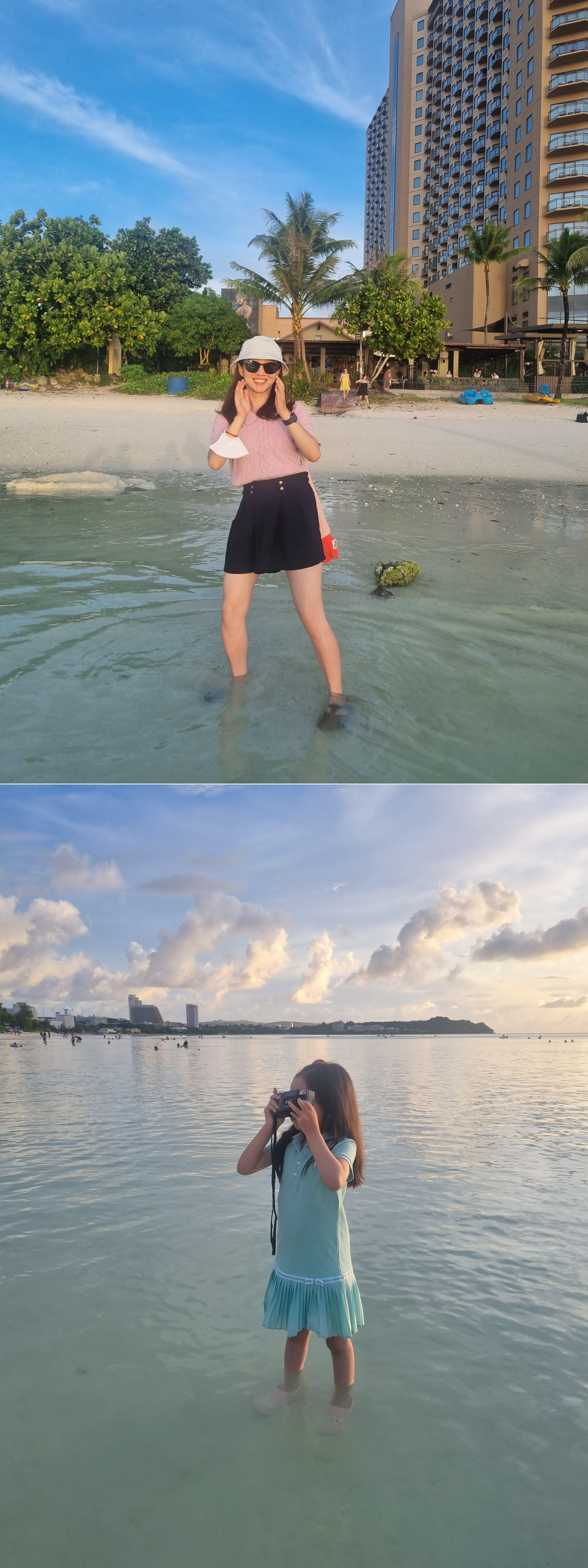 괌의 ‘와이키키’라고 할 수 있는 투몬 비치(Tumon Beach)는 호텔 니코 괌부터 힐튼 괌 리조트 & 스파까지 여러 호텔을 따라 길게 이어져 있는 해변이다.제주도의 어는 아름다운 바닷가에 와 있는 기분이다.이곳도 온통 한국 사람이다. 괌의 경제를 한국사람이 이끌고 가는 느낌이다