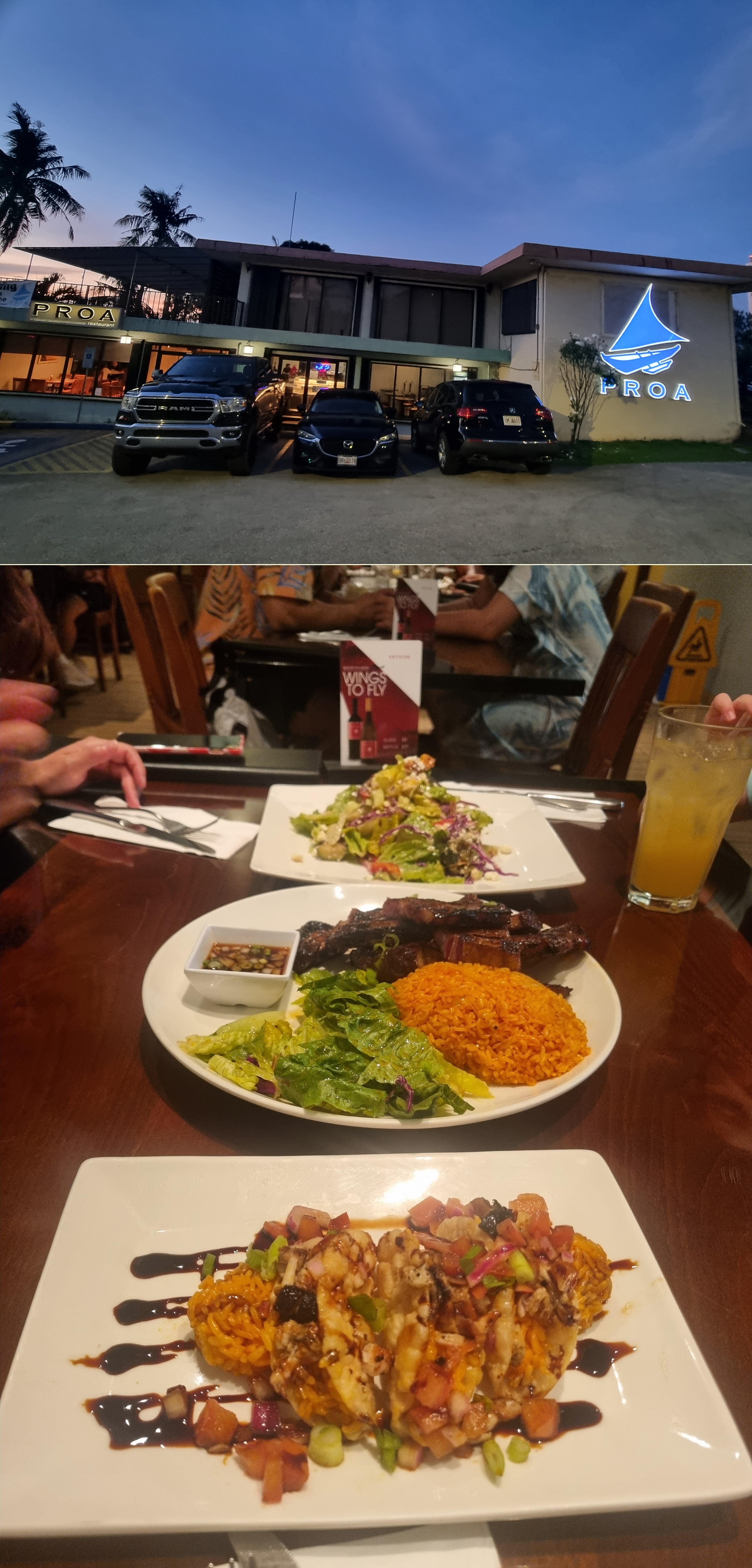 오렌지빛으로 물든 투몬비치(Tumon Beach)의 환상적인 노을을 감상하고 괌 바베큐 맛집 프로아(PROA)에서 저녁식사를 한다. 맛은 그런대로 괜찮으나 손님이 많아서인지(대부분이 한국인)서비스는 영 신통치가 않다.