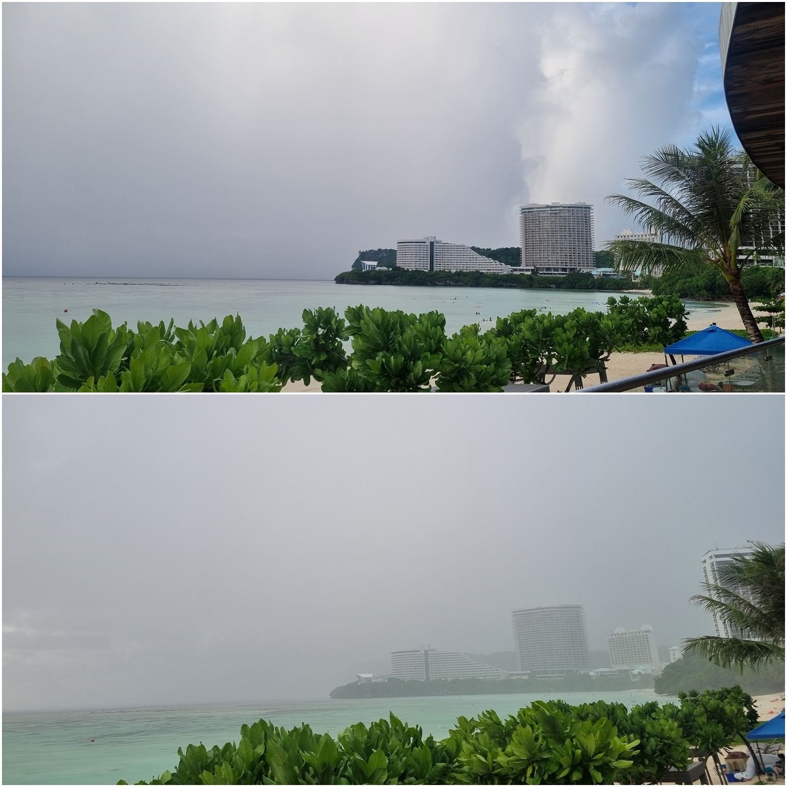 괌은 7월~12월이 우기철 이라고 하는데 우리는 7월 중순경 여행을 왔으니 우기의 시작인 모양이다.파란 하늘이 보이다가우기철 이라 그런지 갑자기 비가 하루에 한두차례 오는데 그냥 잠시 흩뿌리고 지나간다, 길어야 5분정도다. 별도의 우산이 필요없을 정도~~