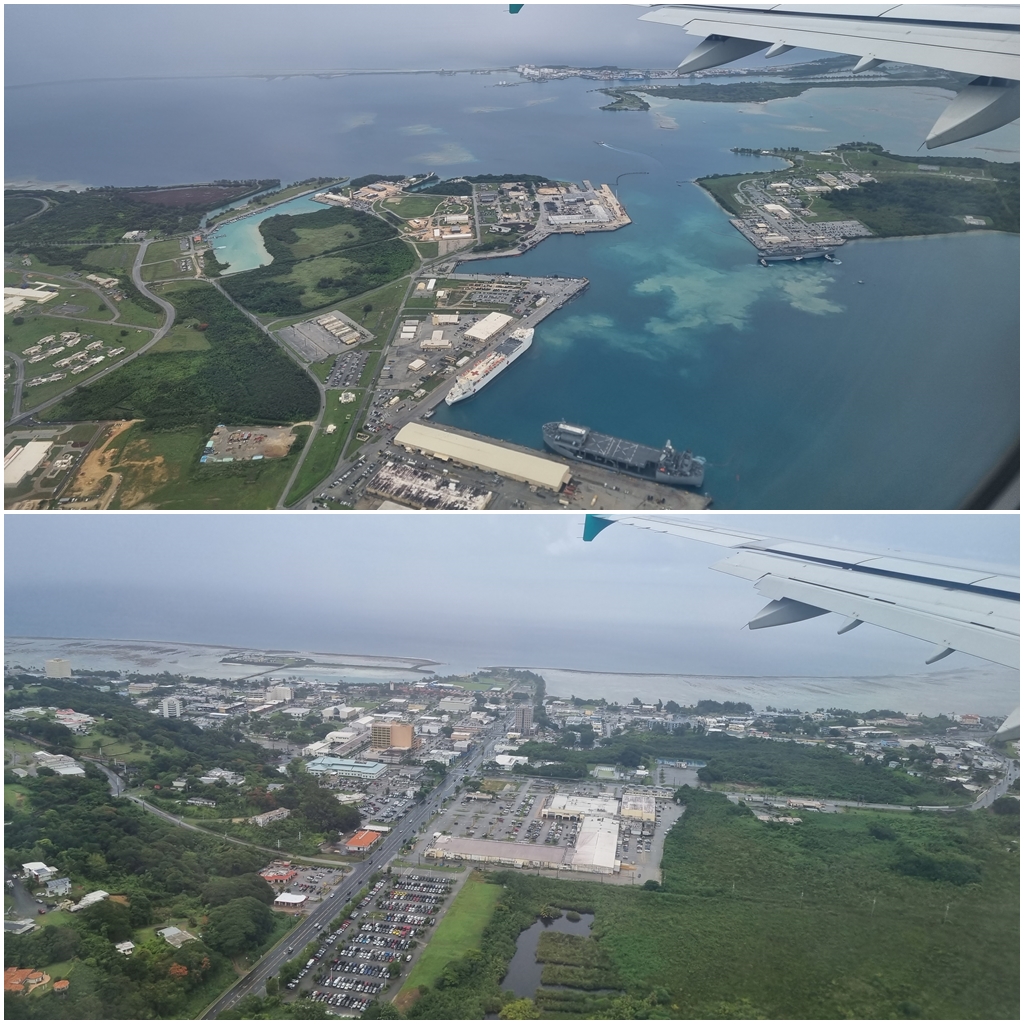 7월14일 인천 국제공항에서 09시출발한 비행기는 인천대교 상공을 지나 일본 미야지키 상공, 필리니 해 상공 을 거쳐 13시 30분(현지시간 14시 30분, 1시간의 시차가 있다)에 괌에도착. 내가 타고온 AIR SEOUL과 동시간대에 도착한 T-WAY 항공사를 타고온 여행객들이 혼잡을 이룬 가운데 출입 수속을 밟고 있다. 99%가 한국인 여행객들이어서 이곳이 외국인지 한국인지 헷갈릴 정도이다.여행객들을 우연치 않게 관찰해보니 젊은 층은 대부분 슬리퍼나 샌달을 싣고 있고 노년층은 운동화를 신고 있었다.이것도 신세대와 구세대의 차이가 아닌가 싶다~~^^. 입국시 얼굴 사진 찍고 10손가락 지문 검사, 그리고 괌에 오게된 이유와 출국날짜,숙소를 물어본다.2시간간 정도 기다림 끝에 입국 수속을 밟고 공항 밖으로 나선다.괌 국제공항에서 택시를 타고 사우스 마린 코프스 드라이브 길을 따라 조금만 가면 타무닝에 위치한 온워드 비치 리조트를 만날 수 있다.랜터카는 내일 인도 받기로 하여 택시를 타고 숙소인 괌 온워드 리조트(Onward Beach Resort)로 향한다.