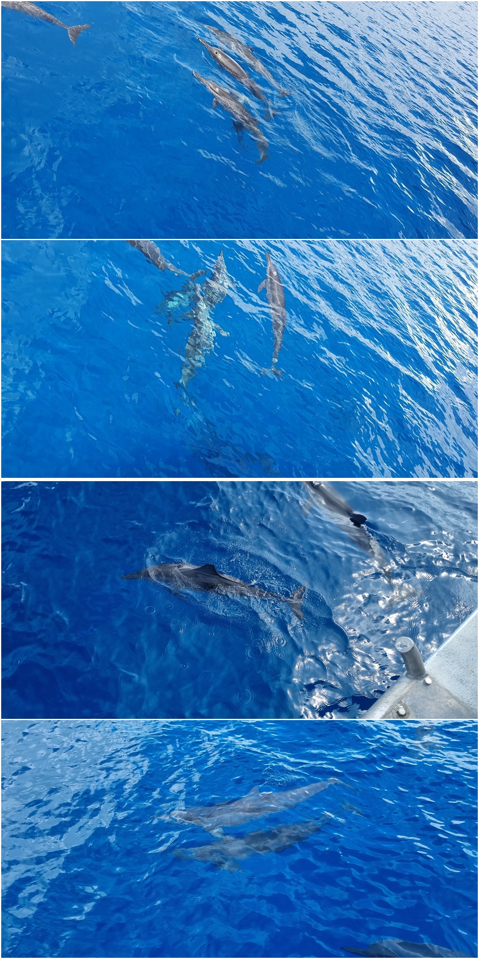 돌고래 투어는 돌고래를 보는게 핵심인데 투어 당일 날씨와 바다 상태에 따라 볼 수 있는 확률이 조금씩 달라지기도 한다는데 우리는 운이 좋아서인지 바로 배 옆으로다가오는 돌고래를 볼수있었다.돌고래 뿐만 아니라 날치도 볼수 있었고 어떤 여행객은 거북이 보았다고 하니 최고의 돌고래 투어가 아닌가 싶다.