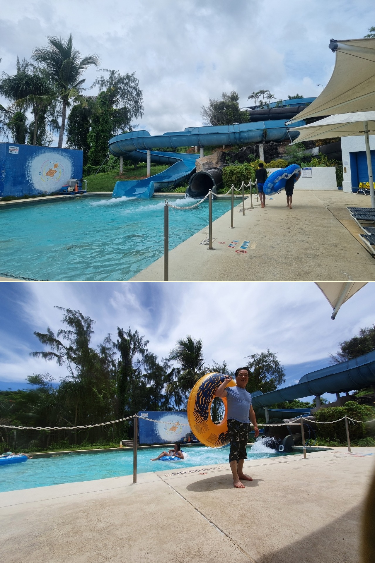 괌에 유일무이한 만타 슬라이더(Manta Slider)는 튜브를 타고 12m 높이에서 아래쪽으로 미끄러져 아찔한 스피드에 어른들이 가장 환호하는 액티비티이다. 그 스피드가 하도 빨라 나도 모르게 소리치게 되게끔 하는 놀이시설이다. 그 아찔함을 생각하면 지금이순간에도 온몸이 떨려오는듯 하다.