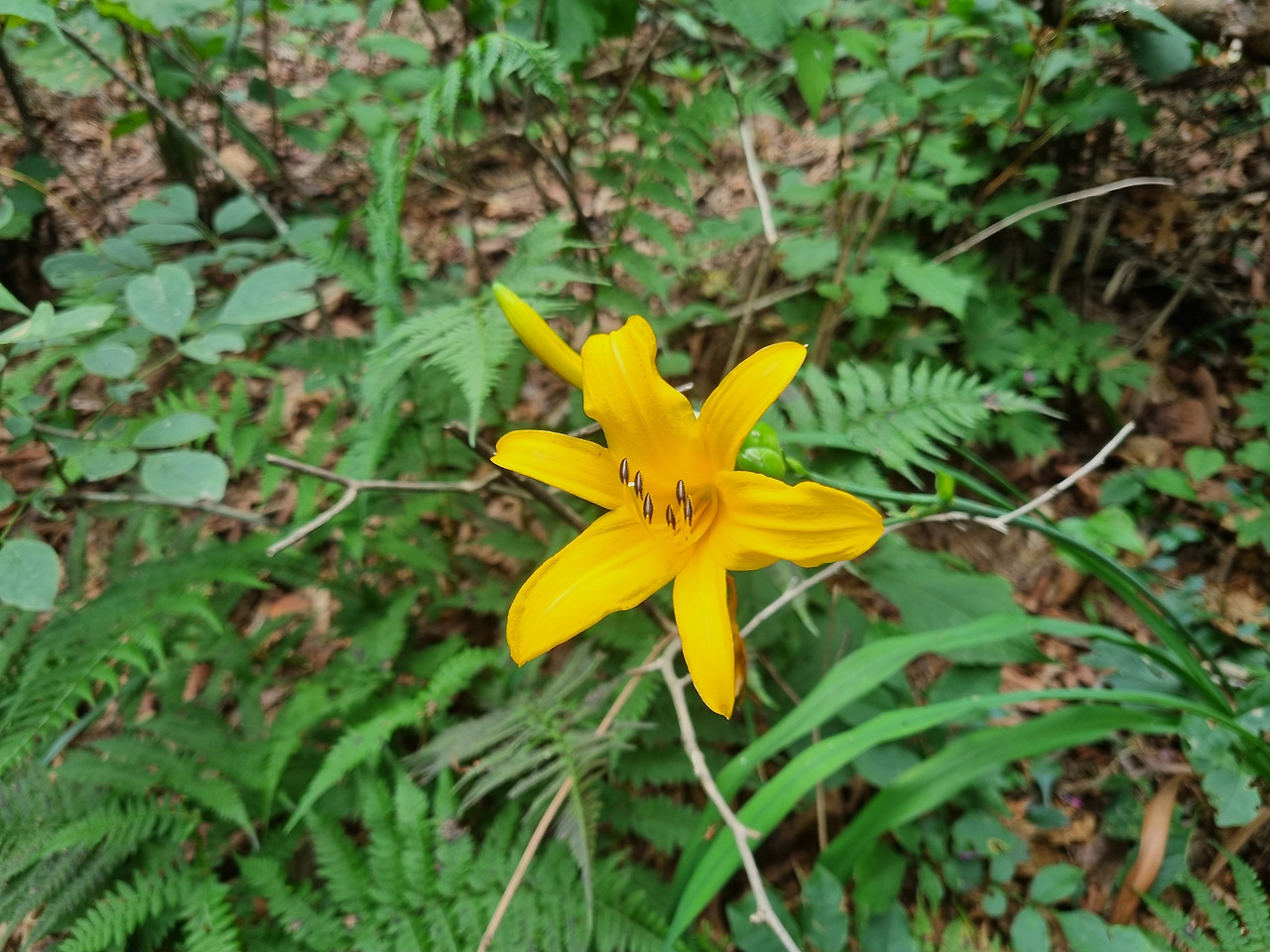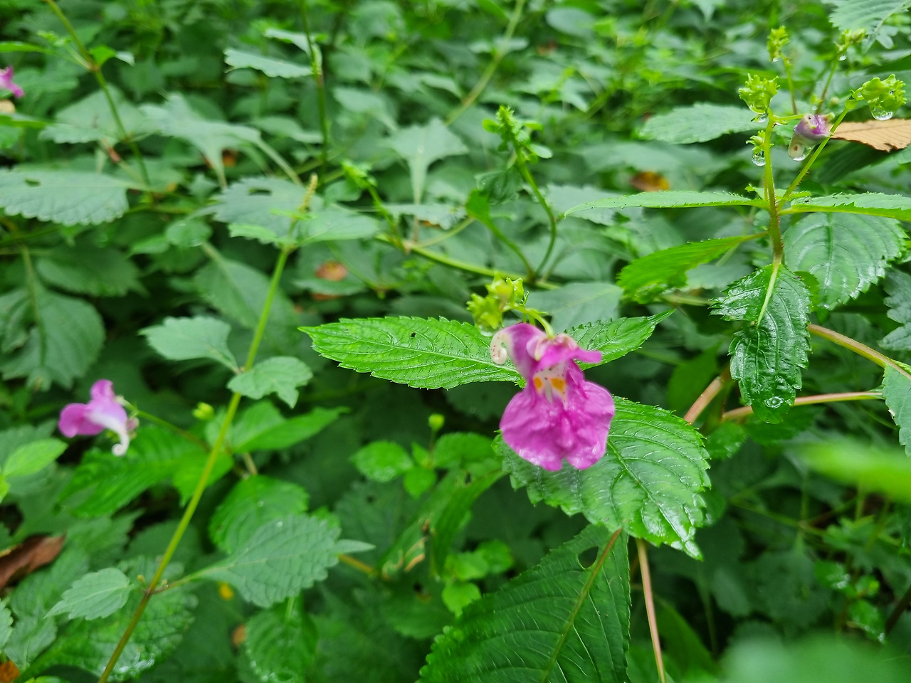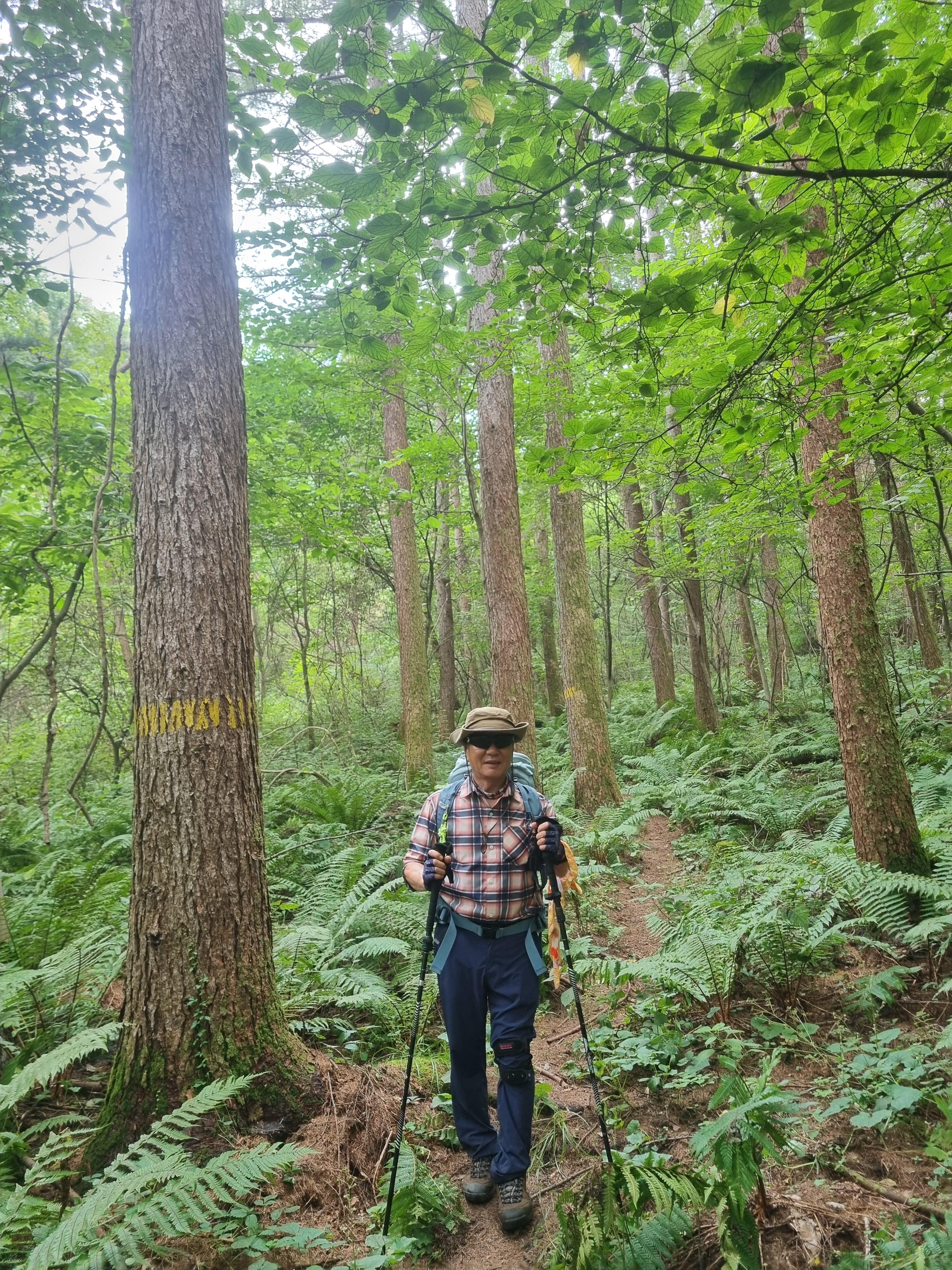 굼넘이로 가는 등산로에는 빽빽하게 늘어선 낙엽송과 음지 식물 꽃말이 ‘유혹’, ‘숨겨진 사랑’인 "관중"이 이곳이 오지임을 말해주는듯하다.