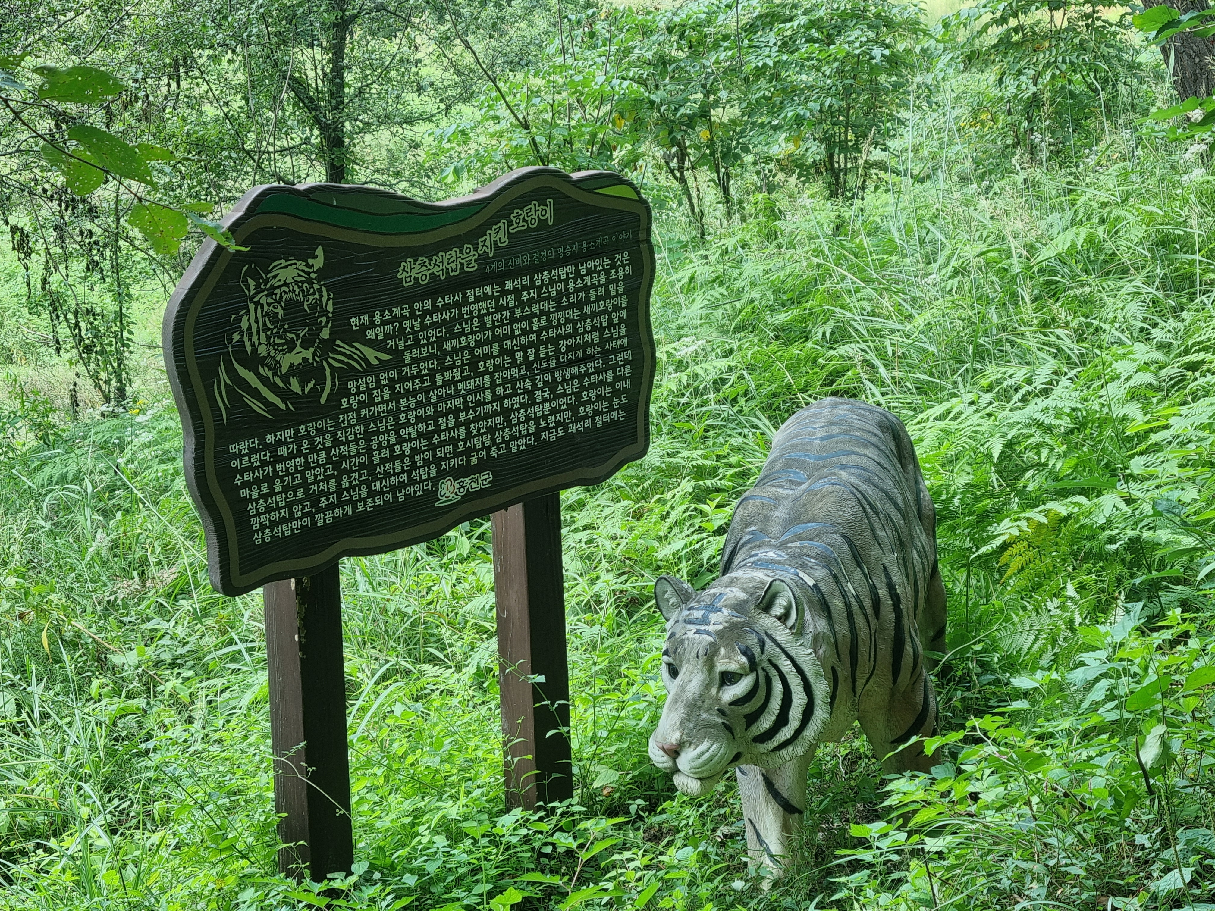 4계의 신비와 절경의 명승지 용소계곡에는 총 20개의 단어,이미지,소리를 통해 사건, 이야기를 전달하는 스토리 텔링 안내판및 조형물이 설치되여져 있어 가던길을 멈추고 읽어보는 재미도 또한 쏠쏠하다.