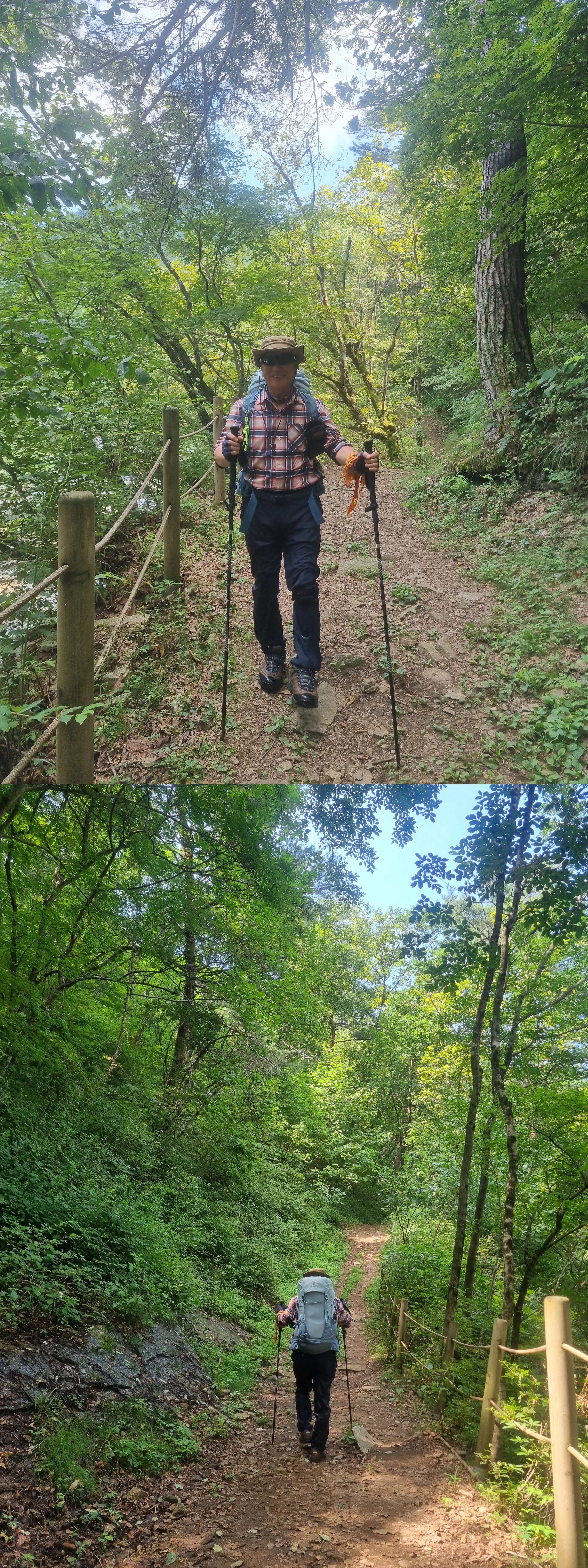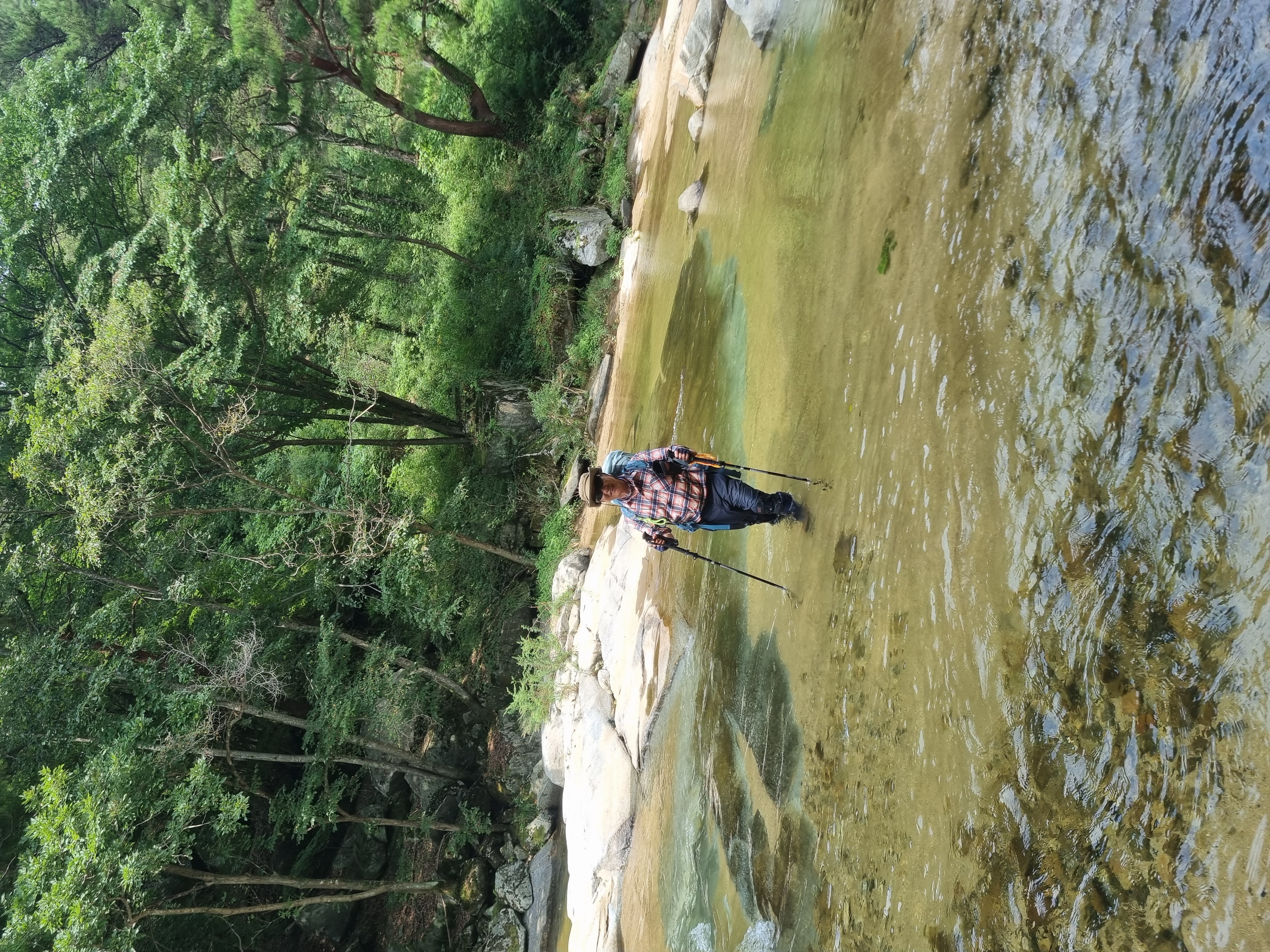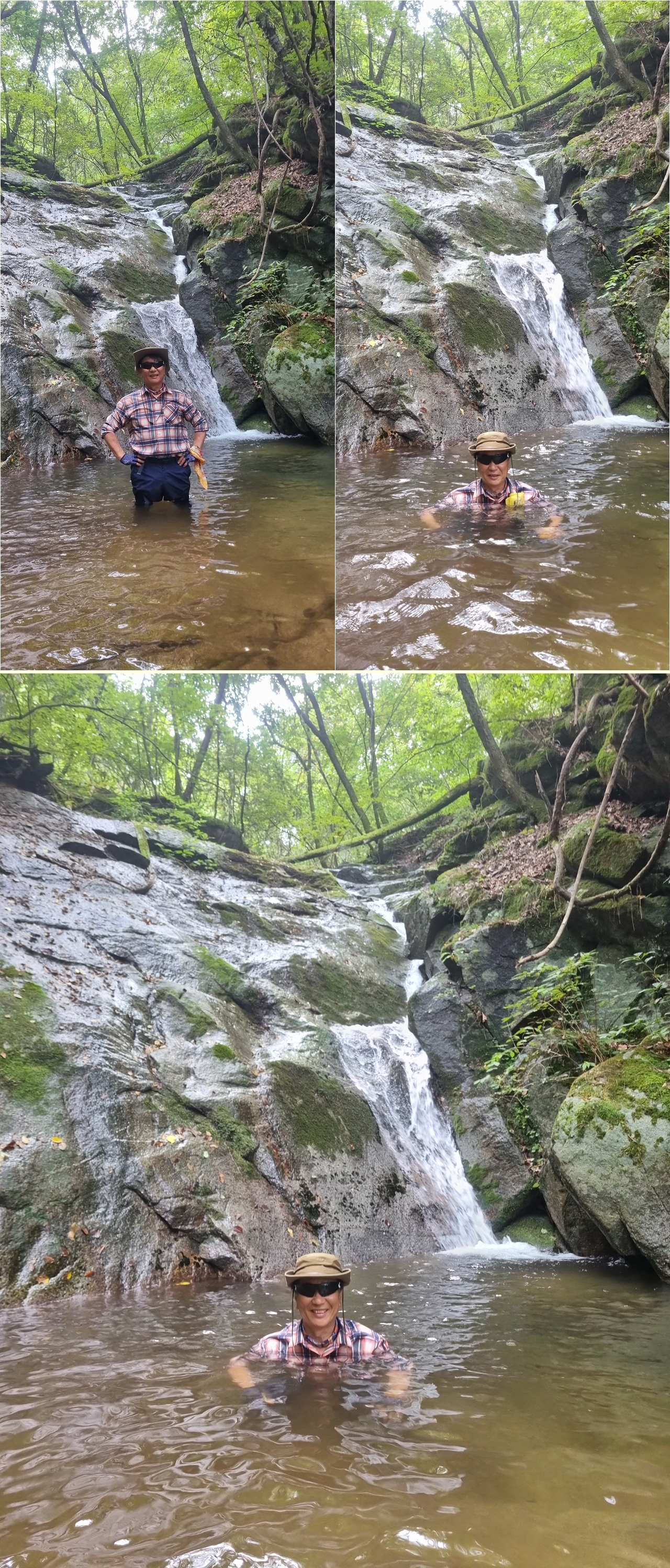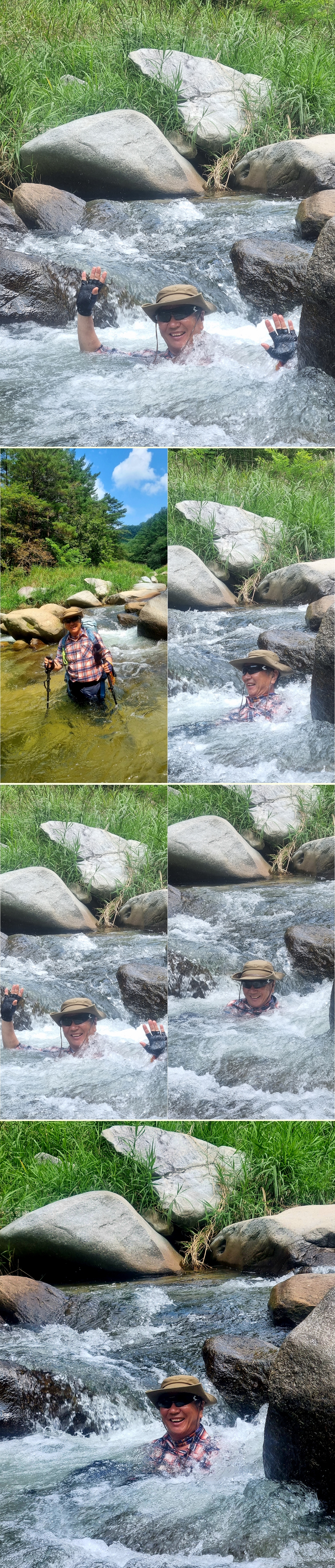 등산 안내도에 표시된 와폭에 이른다.와폭은 경사가 완만한 폭포를 말하는데 내가 보기에는 그냥 직폭포다. 이계곡을 흐르는 물이 두촌면의 용소계곡의의 발원지가 된다. 시원하게 흐르는 땀을 계곡물에 씻어 흘려 보낸다.