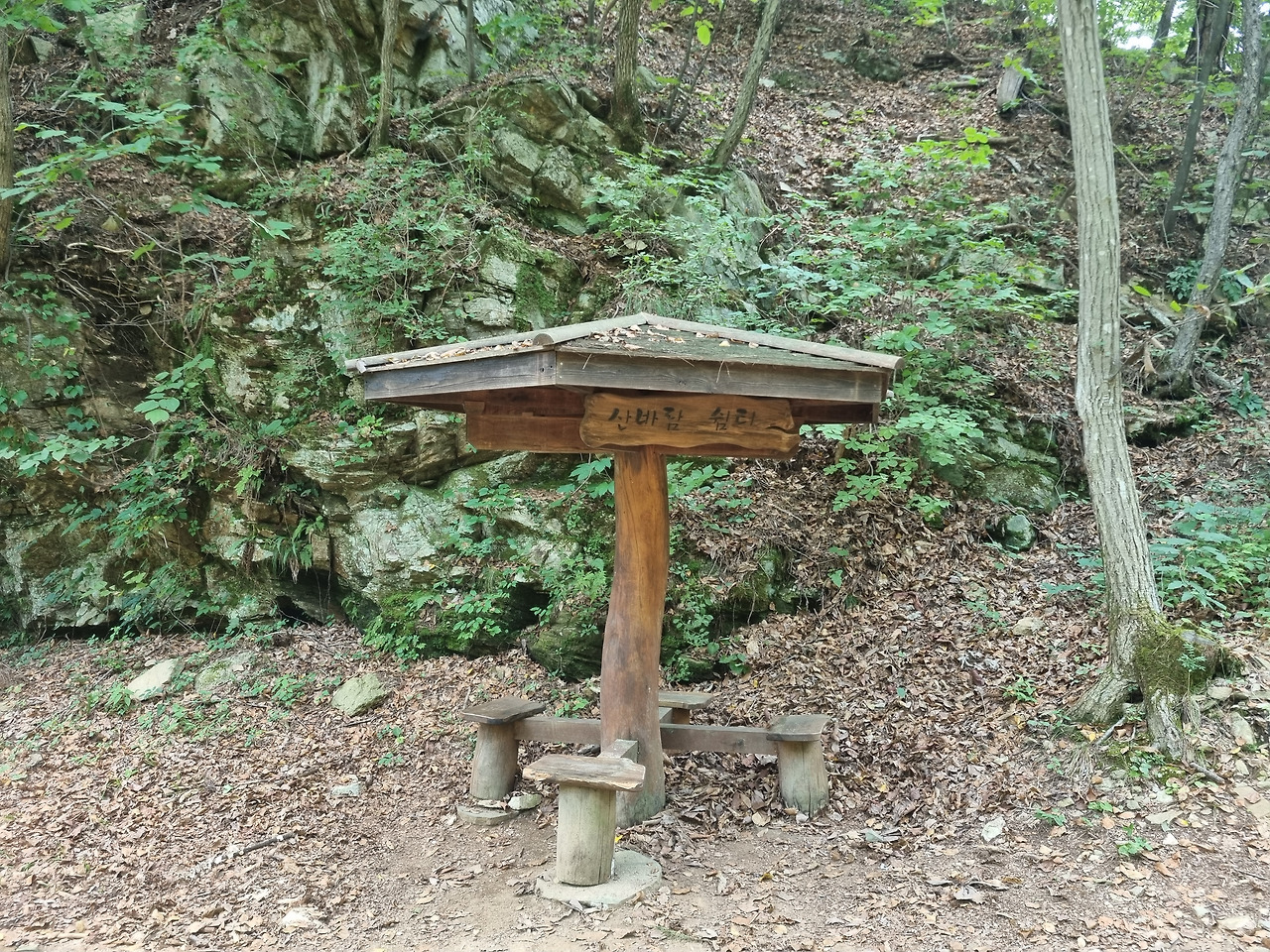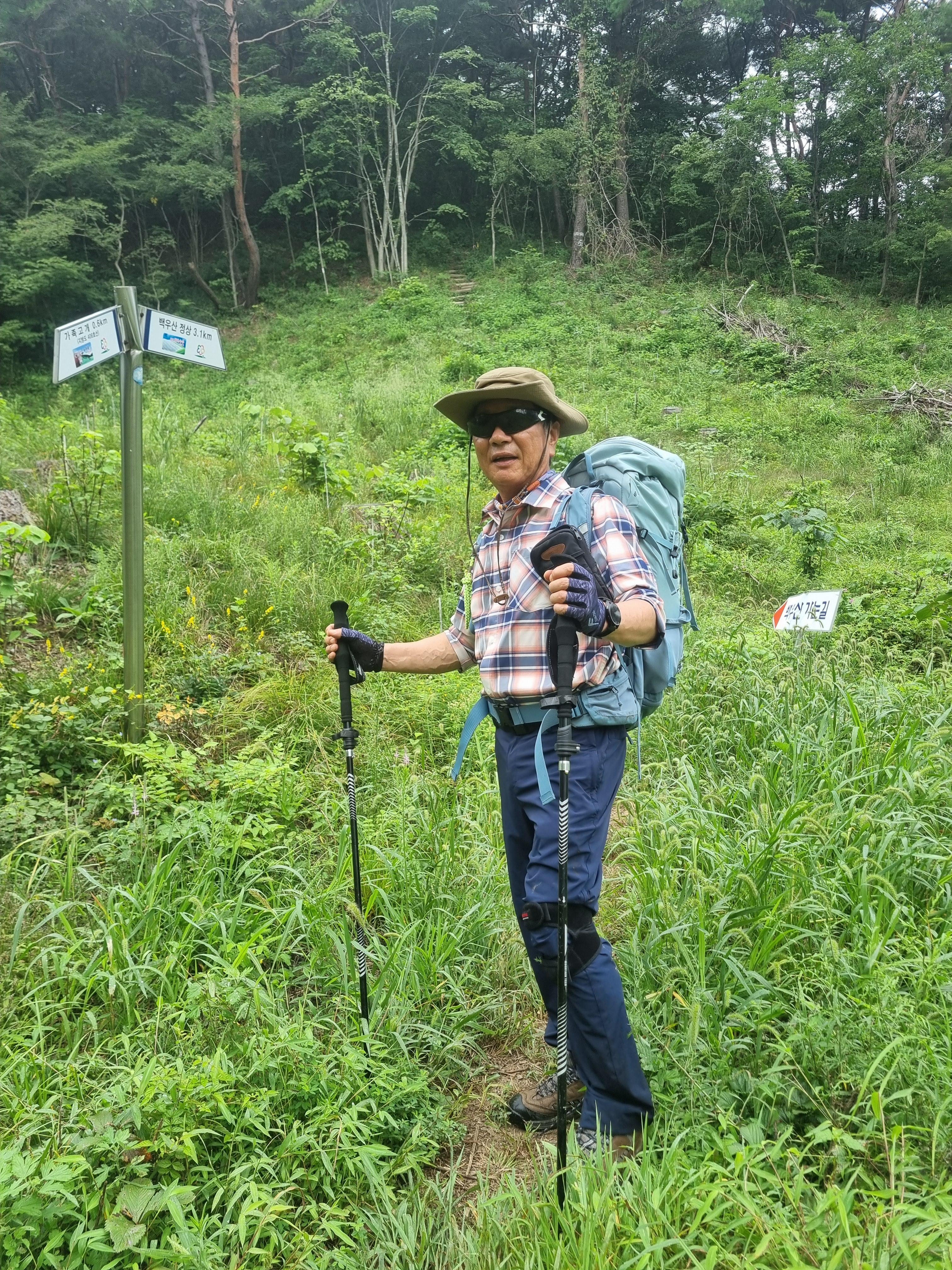쉼터에서 잠시 땀을 닦으며 휴식을 취해 본다.봄은 희망의 산행이요 가을은 풍요의 산행. 겨울산은 낭만이 있다.여름산은 현실이다. 늦여름 더위가 물러가는 때 처서 (處暑)가 지났는데도 온몸에 비지땀이 흐른다. 습도가 높아 느끼는 체감온도는 한증막 수준이다.그래서 어쩌면 산 하면 여름산 인지도 모른다.