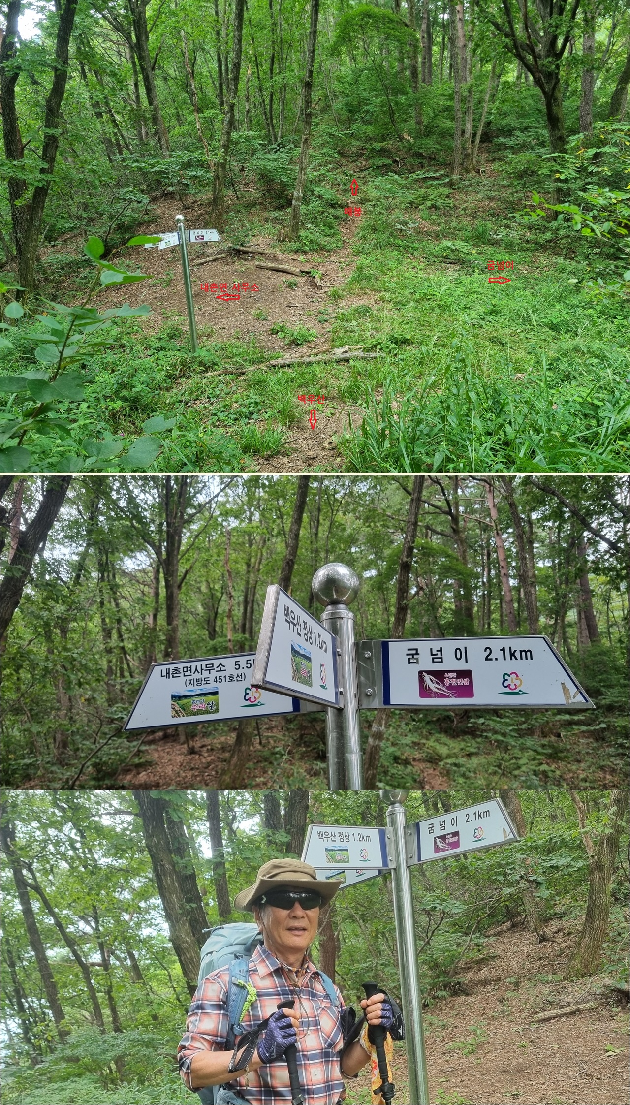 다녀온길:용소계곡주차장-콜택시 이용 가족고개로이동-산행들머리 가족고개-전망대-백우산-군넘이재(사거리)-와폭-큰너래소-용소계곡 구름다리-용소계곡 주차장 원점회귀