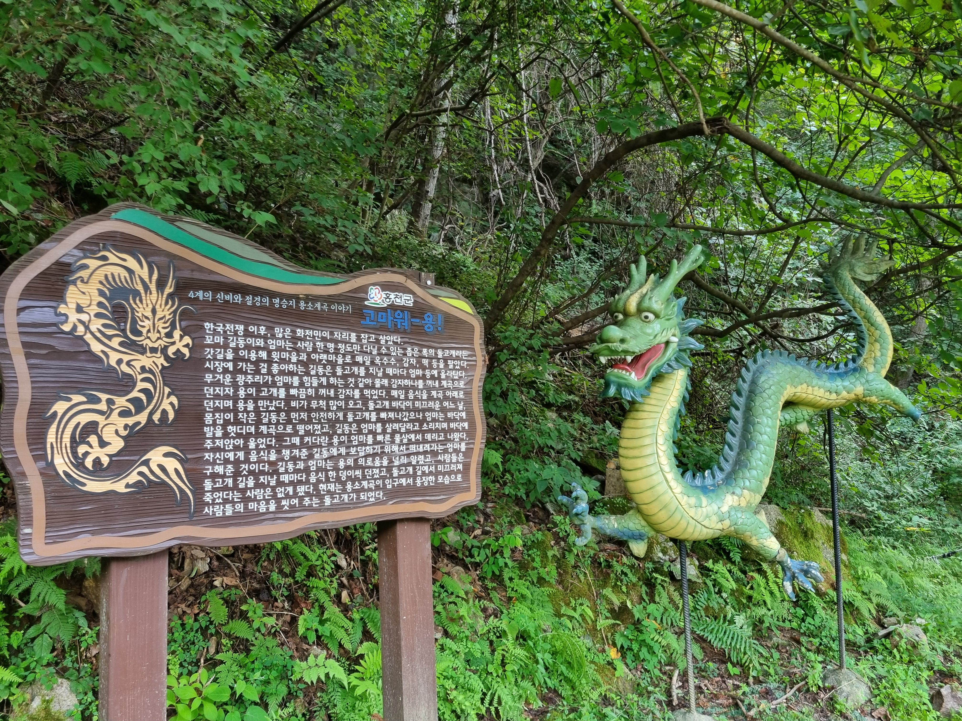 우리나라 계곡에는 거의 용이 많이 살았다 보다. 홍천 용소계곡,가평 용소계곡, 사천 용소계곡,양산 용소계곡,화순 용소계곡,담양 용소계곡,기장 용소계곡 등등~~ 전국에 용소계곡도 참 많다.
