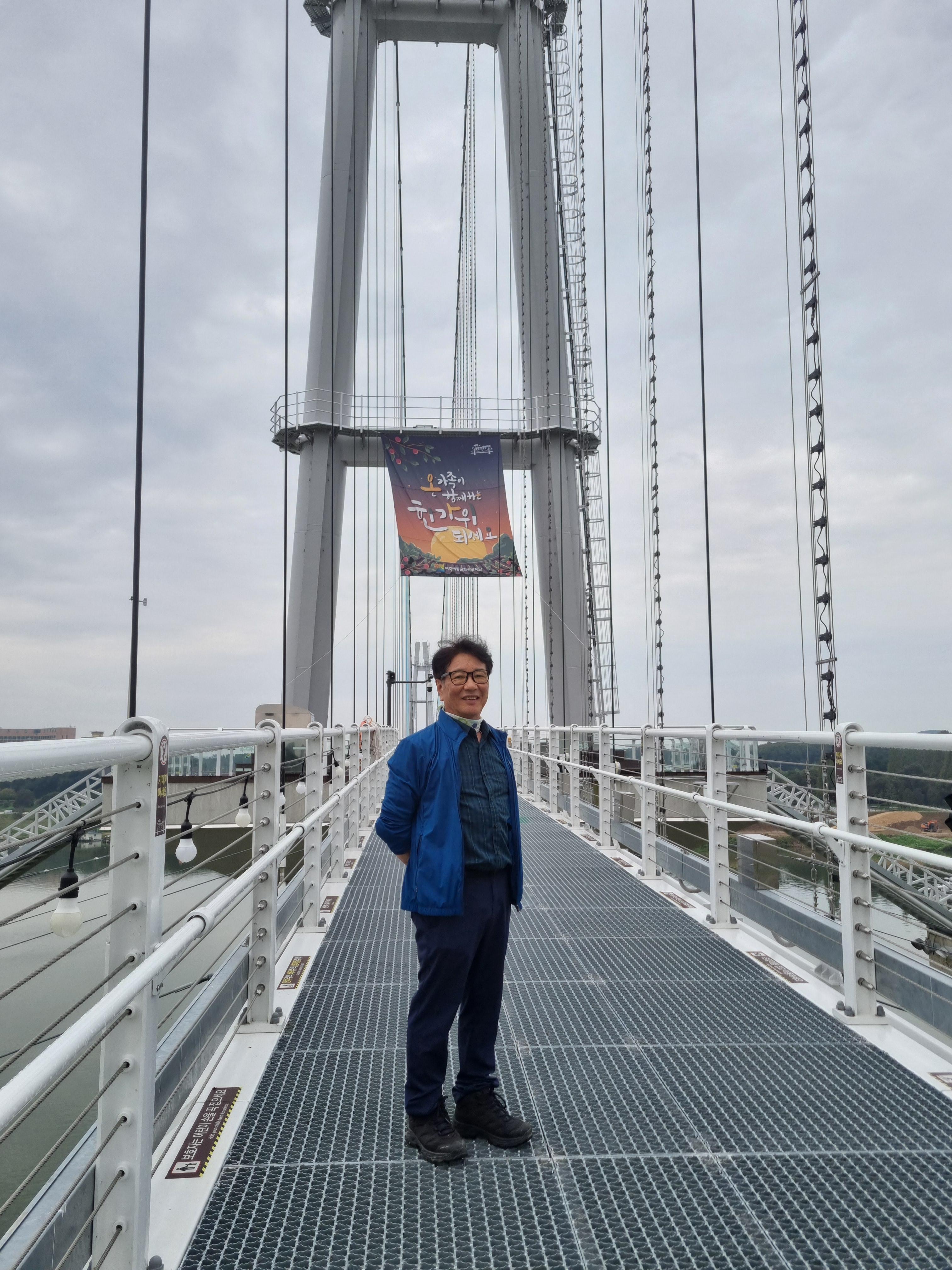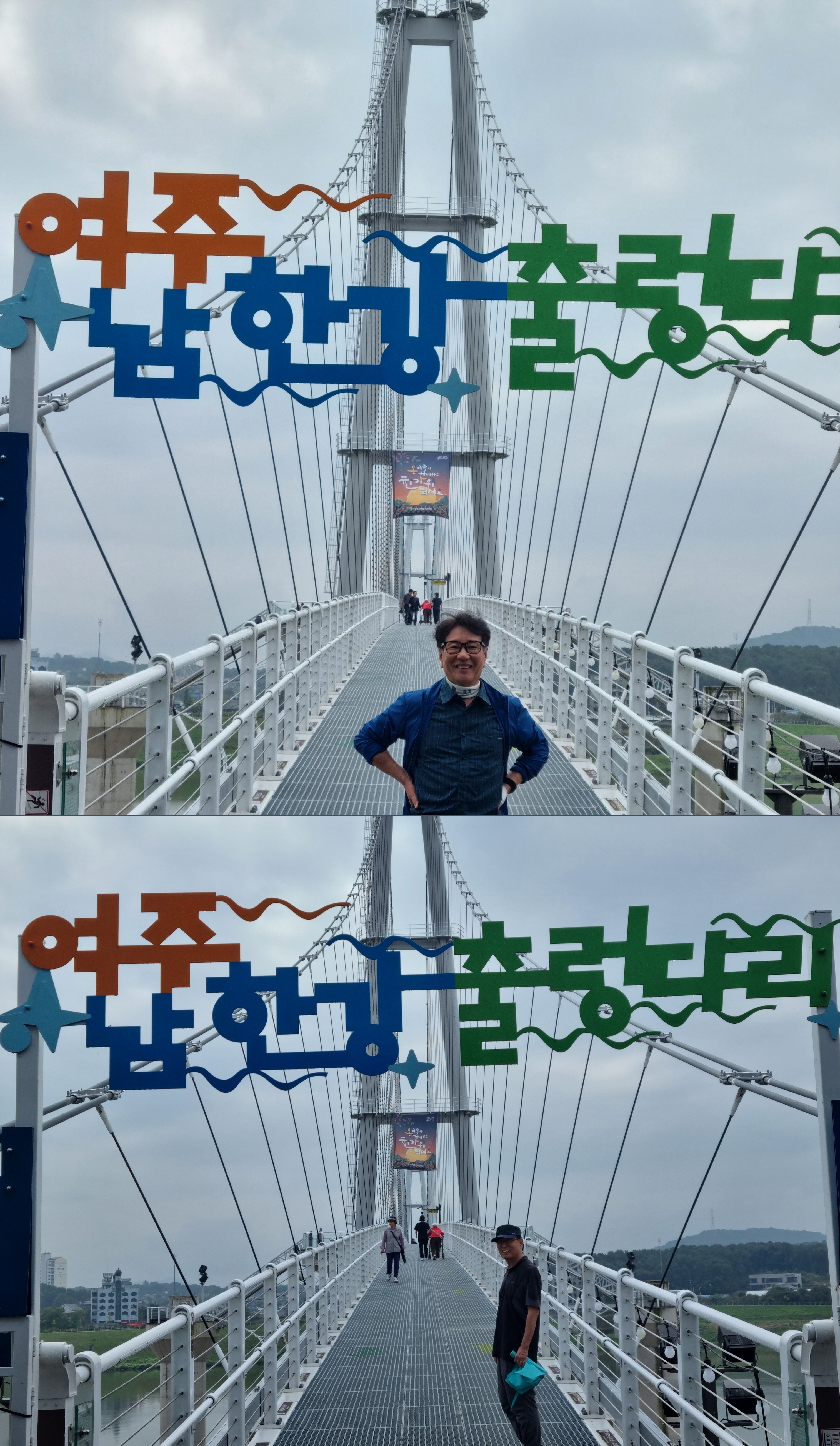 여행후기 서론: 아침 태릉입구역에서 7시30분 출발 목적지 영월 "구봉대산" 산행을 하기위해 달린다.네비에 찍히는 도착시간은10시 20분. 2시간 50분소요. 평소같으면 2시간 20분 거리인데 추석연휴라 그런지 차가 많이 밀려 30분정도 더 걸린다.어제는 비소식이 없었고 오늘 아침 뉴스에서도 남쪽 지방을 제외하고는 별 큰 비소식도 없었는데 조금씩 내리기 시작하던 비는 광주원주고속도로 양평휴게소에 도착하니 점점 더 세차지면서 차창을 두드린다. 네비에 찍히는 도착시간도 점점늘어 11시 12분을 가르친다. 와이퍼 작동은 점점 더 빨라지고~~ 고심끝에 할수없어 산행을 포기 하고 광주 원주 고속도로 서원주IC 가기전 오크벨리 방향에서 회차를 해 서울로 향한다. 꿩대신 닭이라고 했던가 이곳에서 가장 가까운 불현듯 생각나는 최근 개통했다는 여주 남한강 출렁다리가 생각나 그곳으로 핸들을 틀어본다.