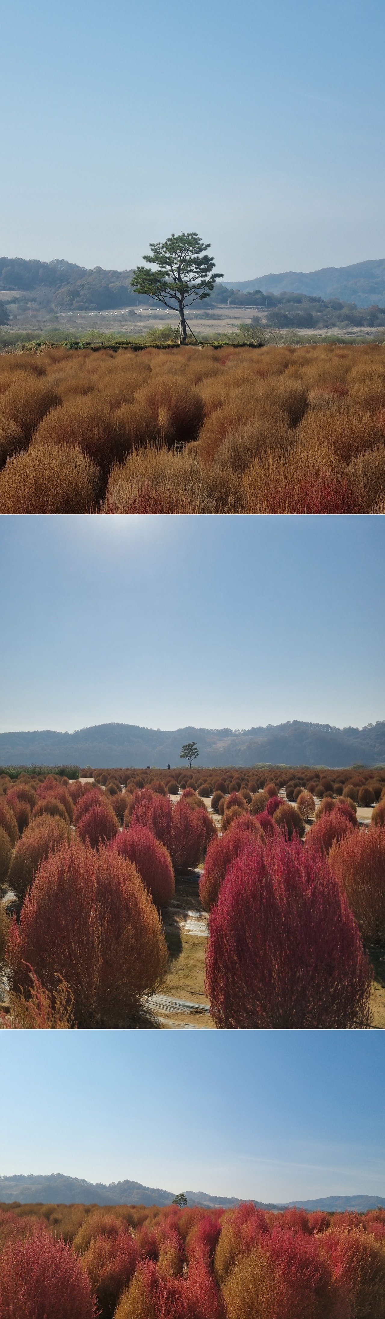 연천 댑싸리정원의 ‘붉은 물결’이 10월 절정을 지나 11월 초에는 이미 지고 누런 갈색잎만 관광객을 맞이하고 있다.누런 떡잎의 갈색이지만 몽긍몽글 솜사탕 같은 댑싸리를 보는 것만으로도 힐링이 되는것 같다.