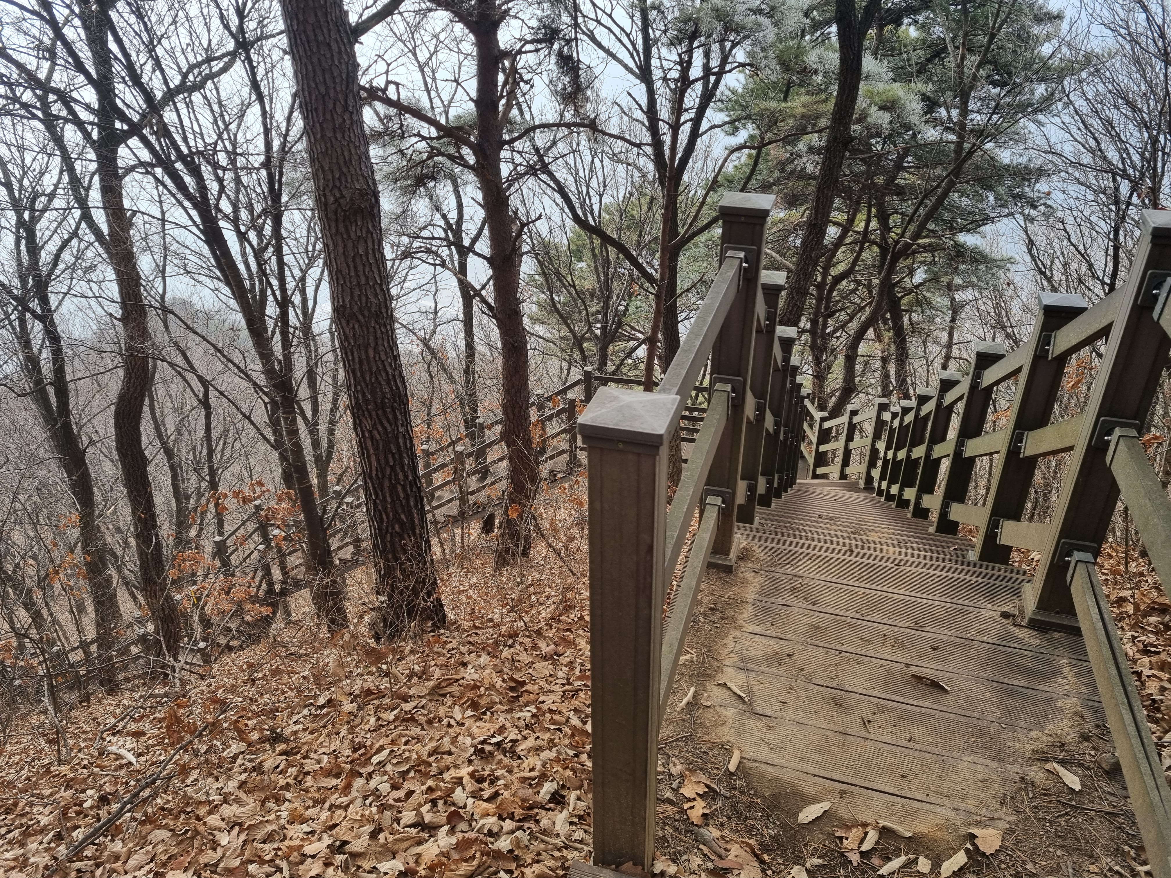 계명산 산행은 그리 녹녹하지가 않다. 마즈막재에서 부터 계속 치고 올라오는 등산로이다.들려오는건 바람소리와 헐떡 거리는 내 숨소리가 전부이다. 목계단 바닥만 쳐다보고 계단갯수를 헤아리며 힘든것을 참고 오른다. 200계단으로 이루어졌다/