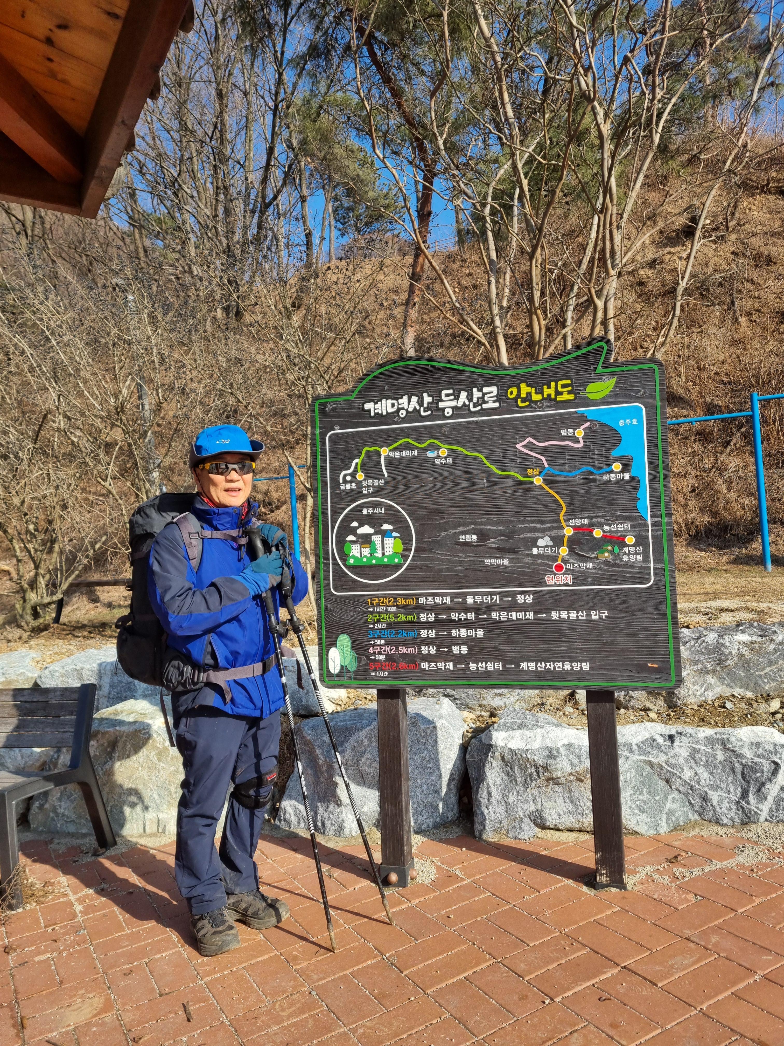 미지의 세계로 들어갔다 온 이 기분을 무엇으로 표현할까? 유명하고 이름난 산 열번이고 백번이고 가는것 보다는 한번도 가보지 못한 미답산 다녀오는게 훨씬 낫다.앞으로도 미답산 산행은 계속될것이다. 하산후 마즈막재 제1주차장 건너편 등산 안내도 앞에서 인증하고 또 하나의 미답산 충주 계명산 산행일기 여기서 마침니다.